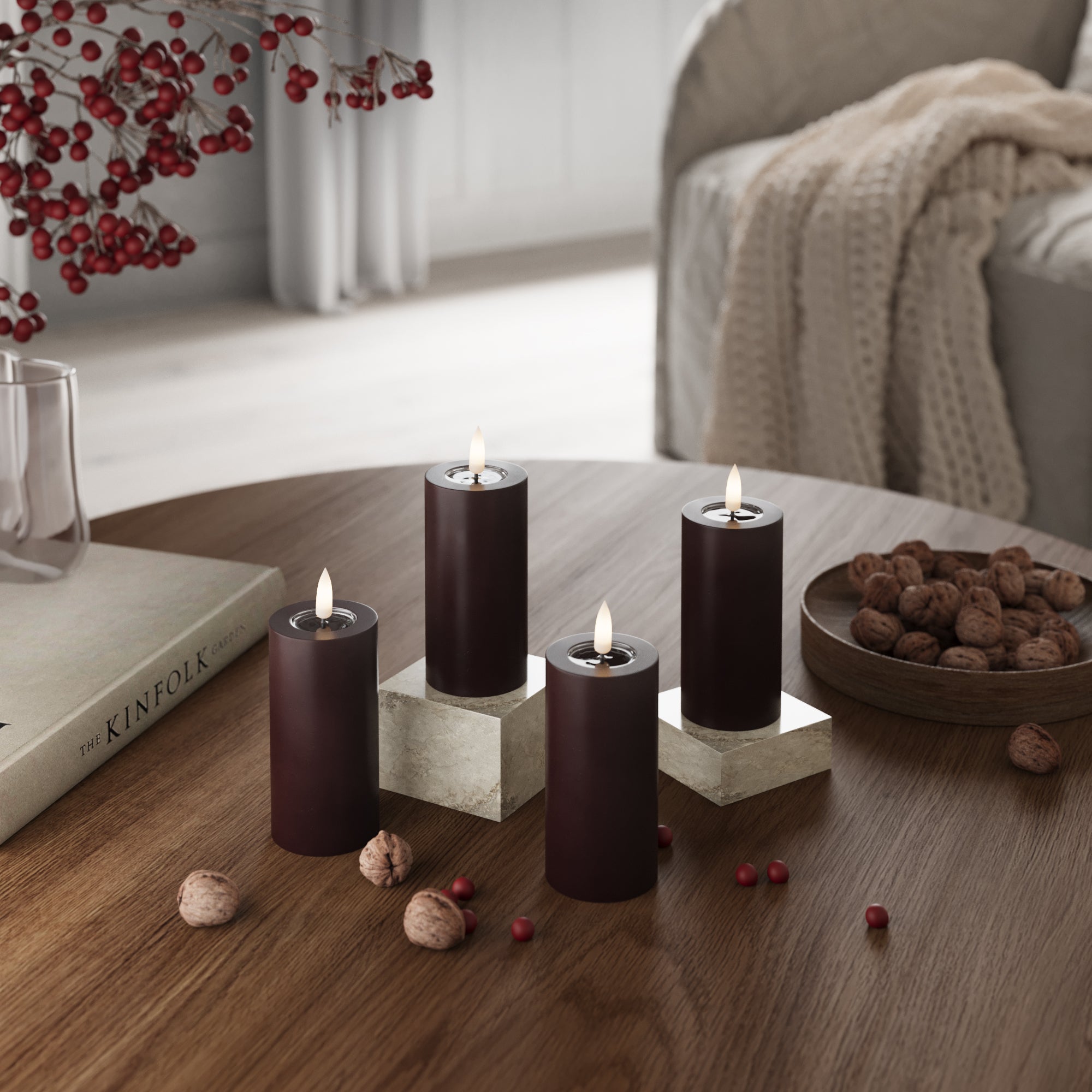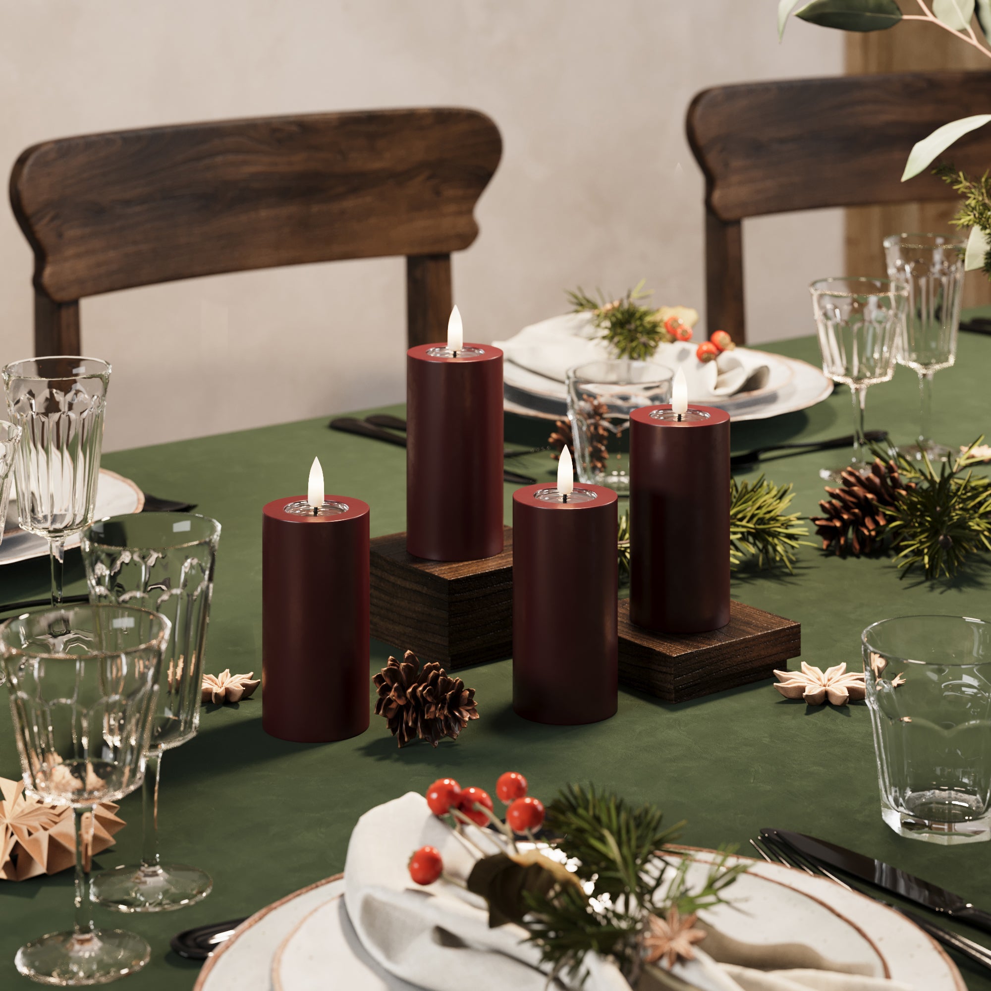 LED Blockljus Ø 5 x 10 cm Bourgogne - 4 st