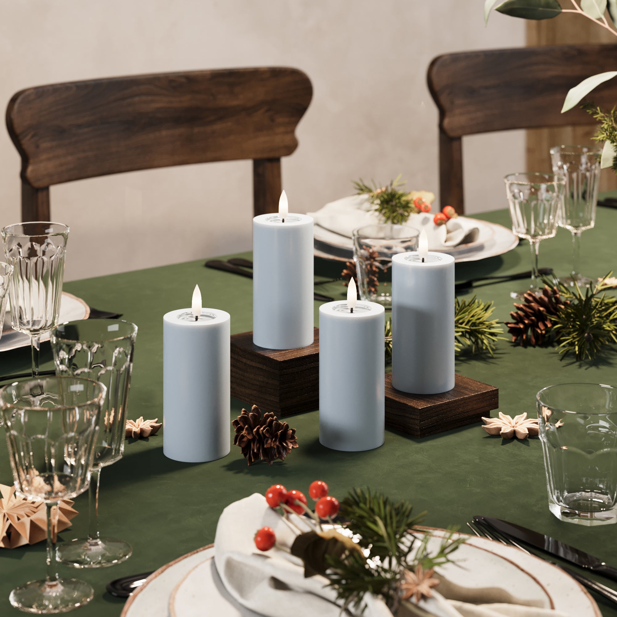 LED Blockljus Ø 5 x 10 cm Stövet blå - 4 st