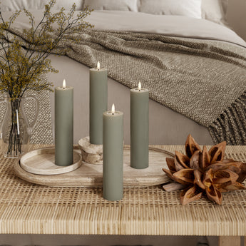 LED Blockljus Ø 5 x 20 cm Salviagrön - 4 st