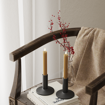 Dette elegante LED kronelys i Karry tilbyder en virkelighedstro 'Real Flame'-effekt, der er så naturtro som et ægte stearinlys. Med en højde på 15 cm og en diameter på 2 cm er hvert LED kronelys omhyggeligt fremstillet i stearin & resin, udstyret med en livagtig 3D-flamme og en unik belægning af resin i toppen. Denne særlige kombination skaber ikke kun en autentisk følelse, men giver også det karakteristiske 'wet look', der efterligner smeltet stearin perfekt.