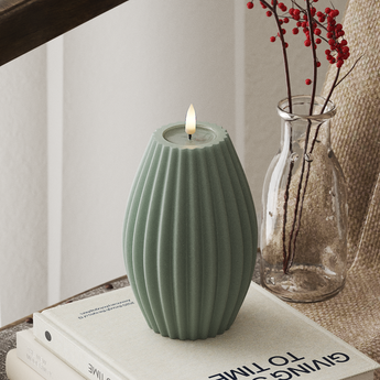 Produktet kan findes i: All, Clerk API, LED Indoor light, LED Ribbed candle, LED Ribbed candle D 10 x h 15 cm, Pillar candle - All, Sage Green, Seasons