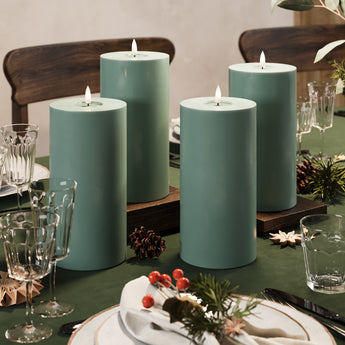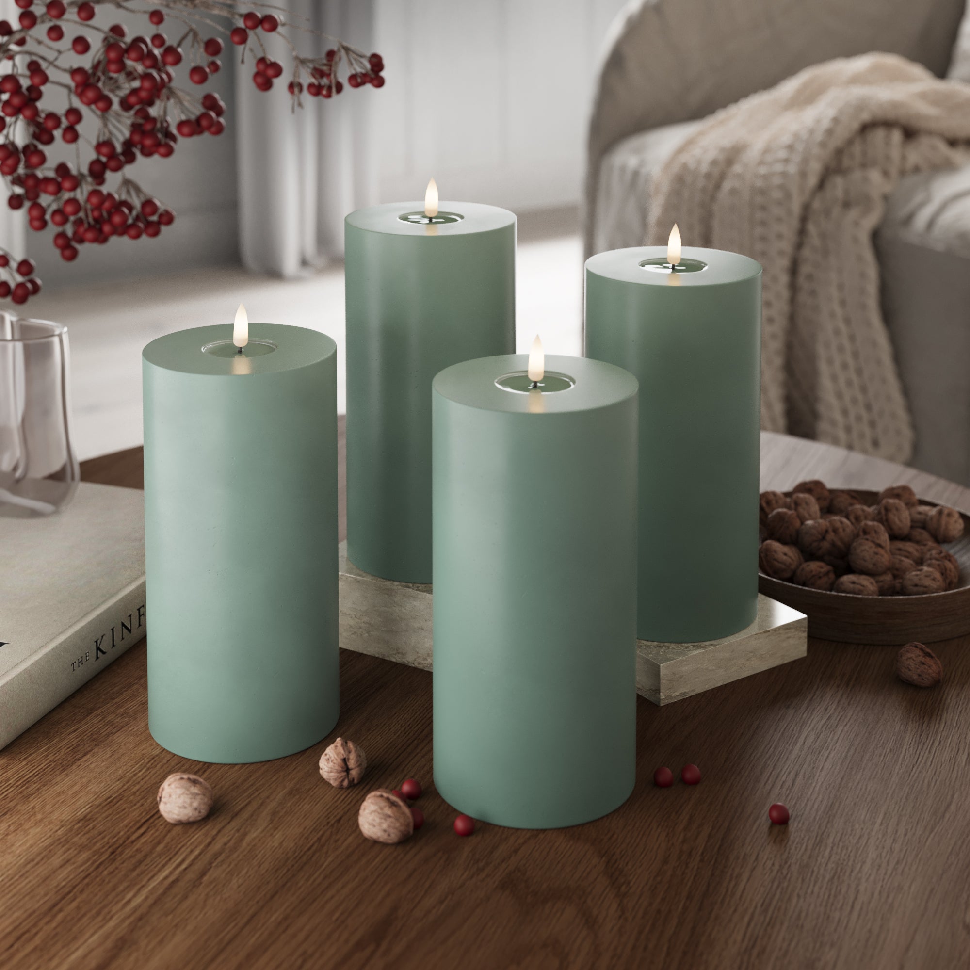 LED Bougie pilier Ø 10 x 20 cm Vert jade - 4 PCS