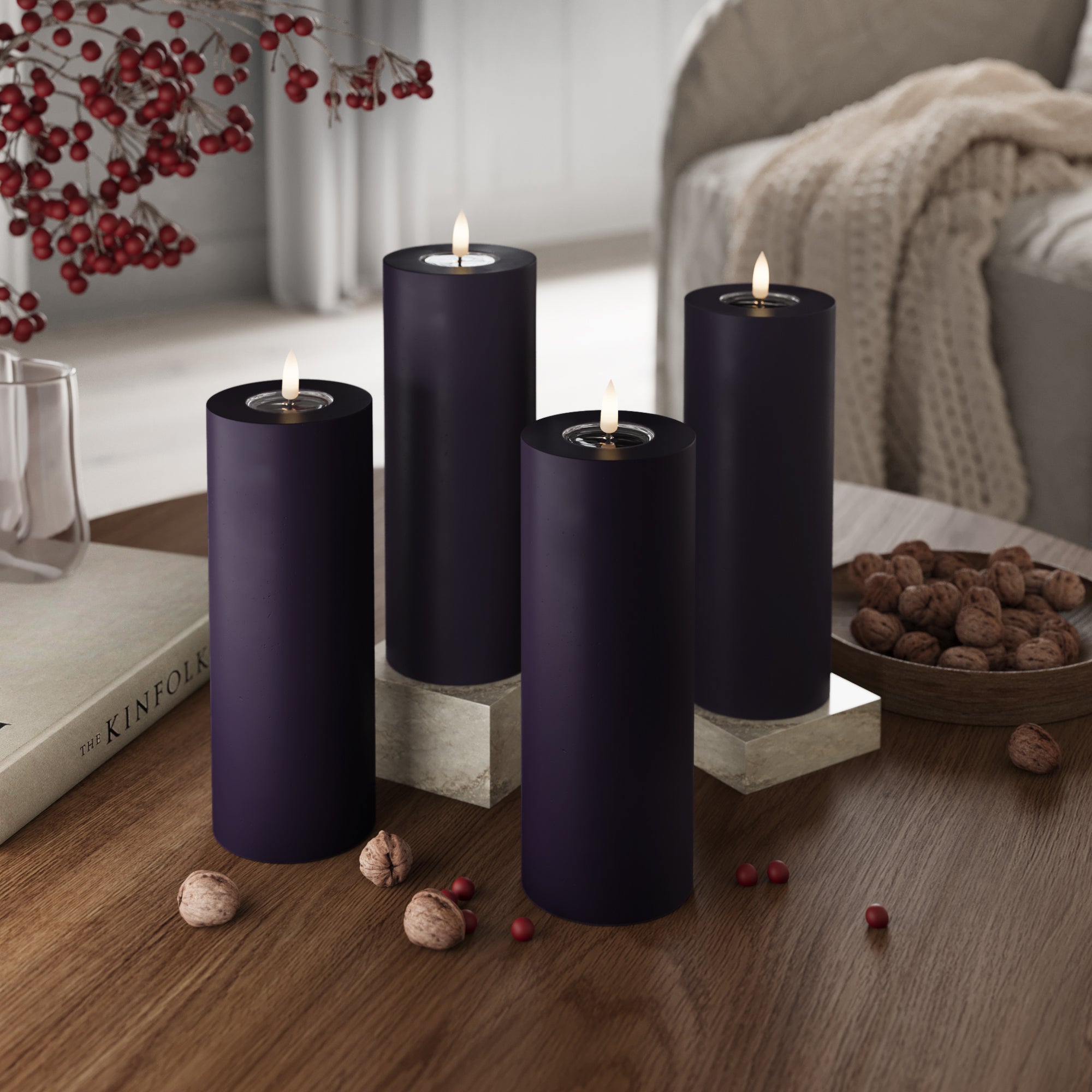 LED Bougie pilier Ø 10 x 20 cm Violet foncé - 4 PCS