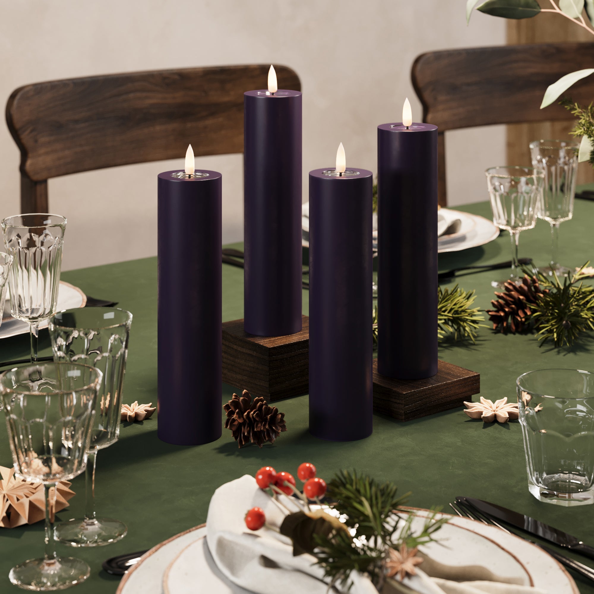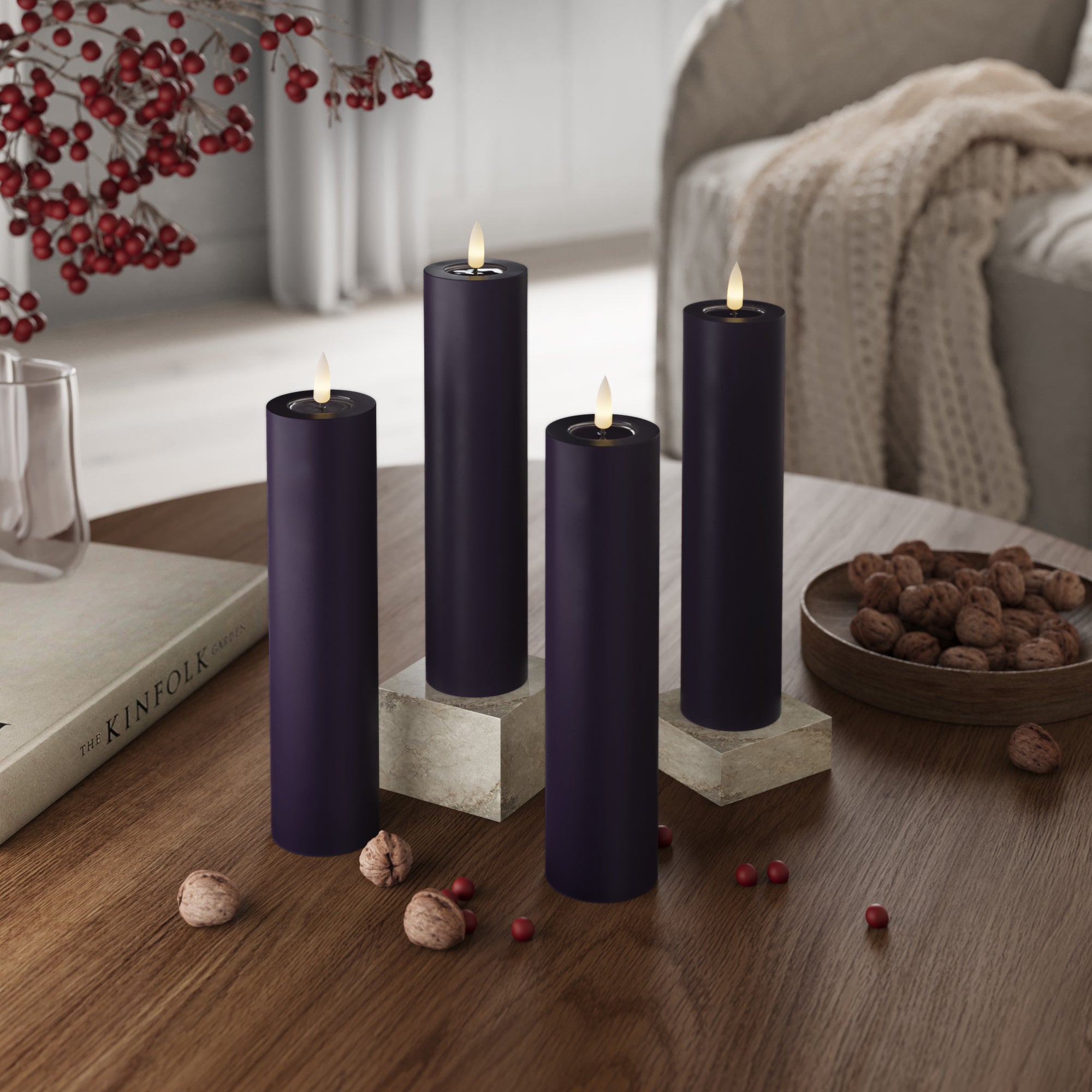 LED Bougie pilier Ø 5 x 20 cm Violet foncé - 4 PCS