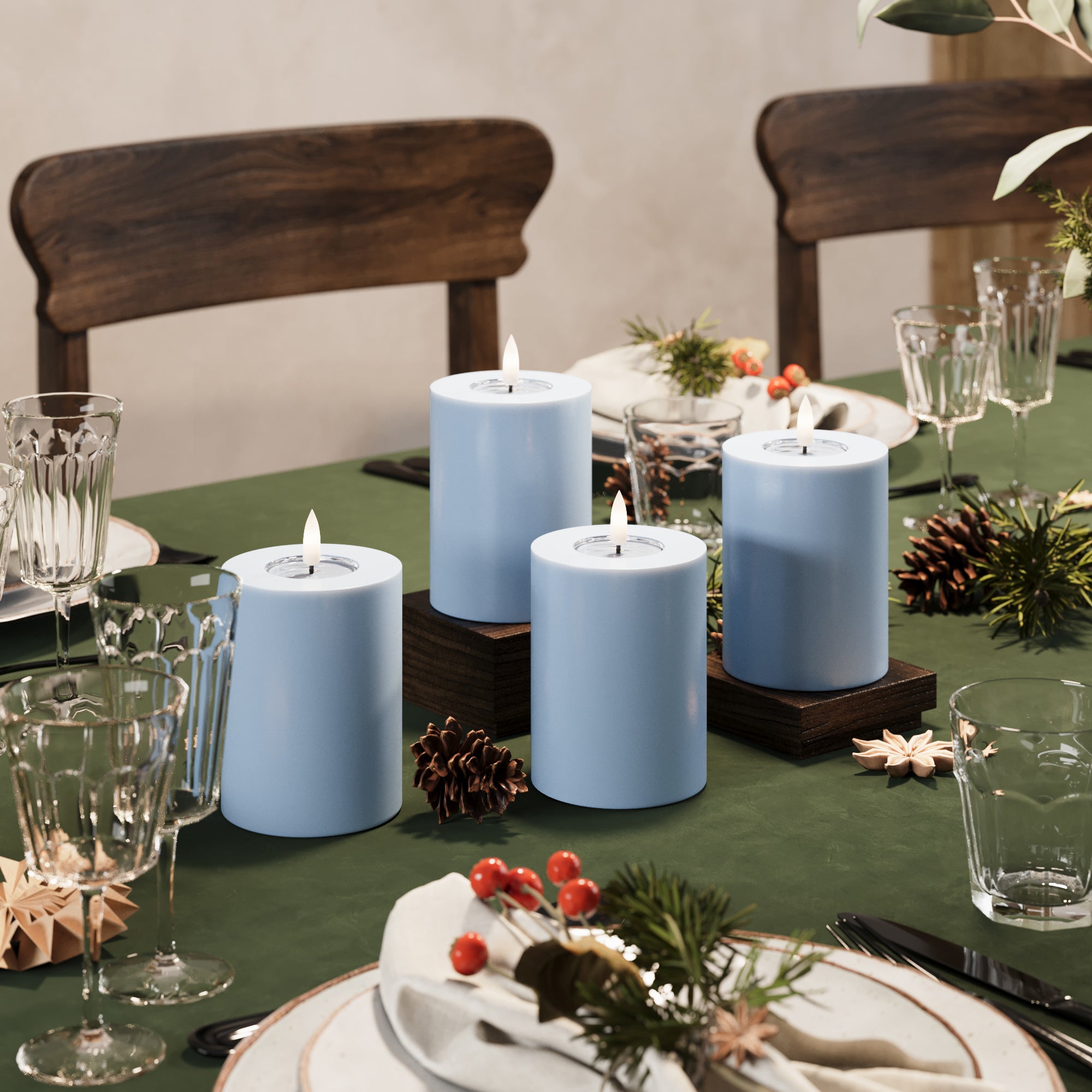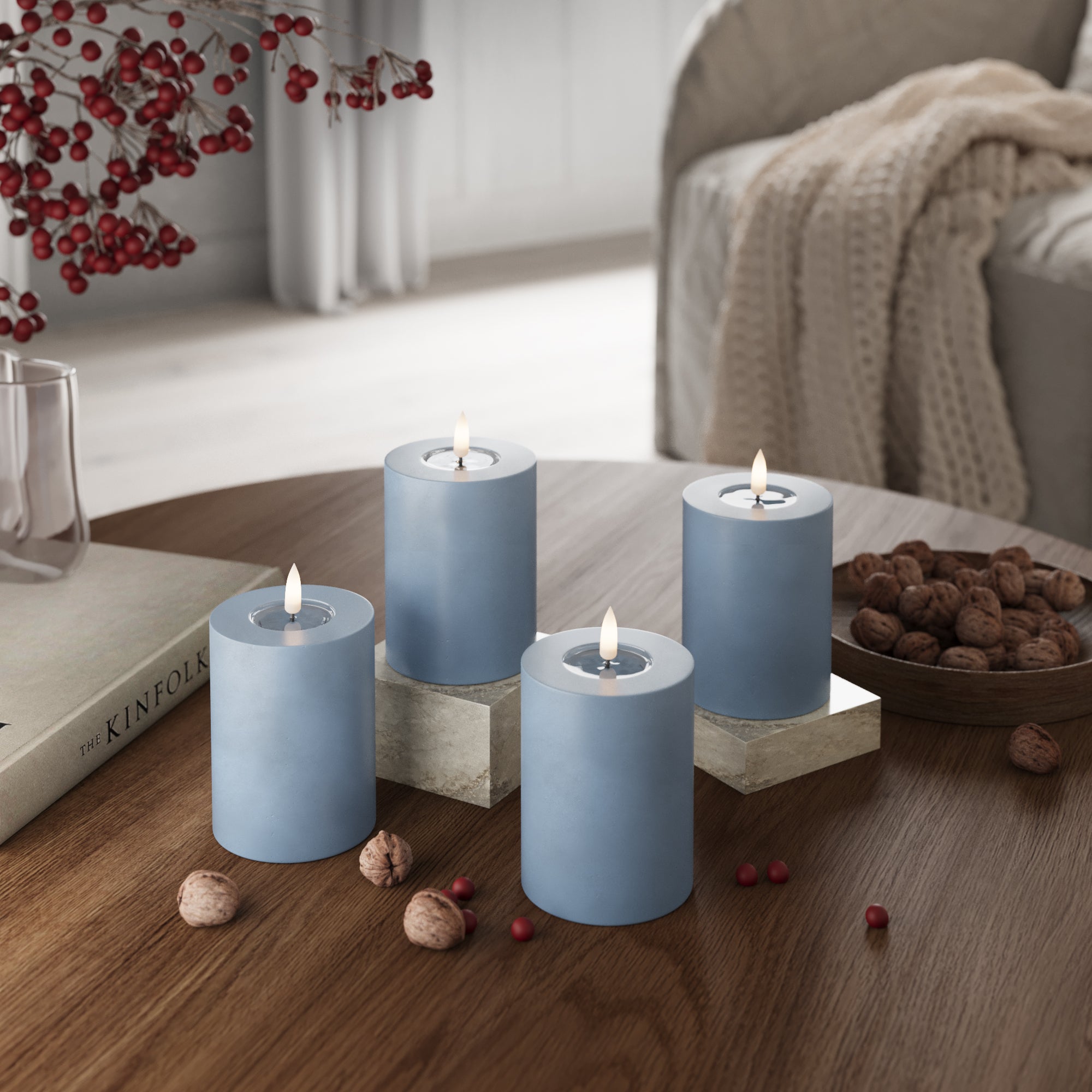 LED Bougie pilier Ø 7,5 x 10 cm Bleu glace - 4 PCS