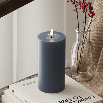 Ten elegancki LED Zablokować światło Lodowy niebieski Oferuje rzeczywisty efekt „prawdziwego płomienia”, który jest równie realistyczny jak prawdziwa świeca. O wysokości 15 cm i średnicy 7,5 cm każda LED Blokowanie świec starannie wykonanych z świec i żywicy, wyposażone w realistyczny płomień 3D i unikalną powłokę żywicy u góry. Ta szczególna kombinacja nie tylko tworzy autentyczne uczucie, ale także nadaje charakterystyczny „mokry wygląd”, który doskonale naśladuje stopione świece.